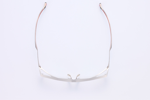KEN OKUYAMA EYES 初のフロントにアルミニウム合金を採用し、ボリューム感のある立体的なシルエットを可能にしたモデル。プレス構造と切削加工で作られたダイナミックでインパクトのあるフォルムだが軽量に仕上げられた逸品。