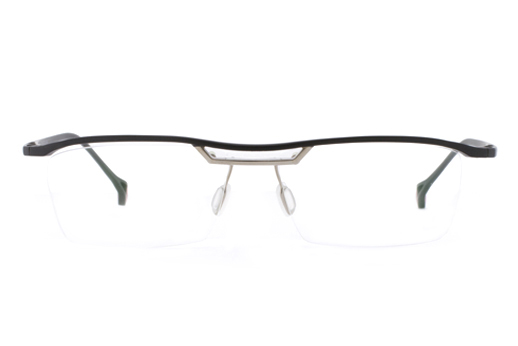 KO-215 is a clean and simply integrated brow-bar type frame featuring two-tone plating on the bridge. This frame has a basic form from the front view but the truss-structure that highlights the design of KO-215 can be seen from the top view.