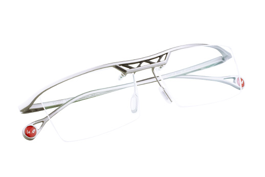 人間工学に基づき、必要な部分だけ側頭部の形状に近づけた特殊なテンプルラインとブランドの象徴となりつつあるトラス抜き構造が特徴。