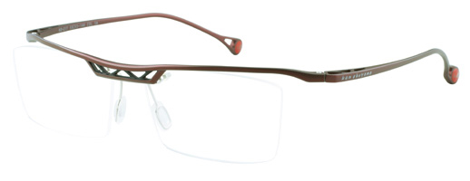 KO-217 is designed by modifying KO-215. Featuring clean integrated brow-bar and bridge, this frame has a basic form from the front view but the truss-structure that highlights the design of KO-217 can be seen from the top view.
