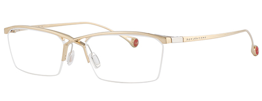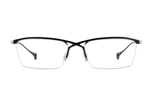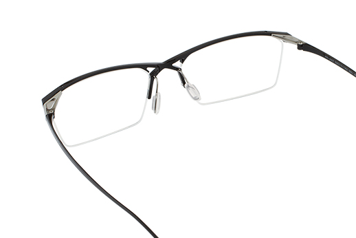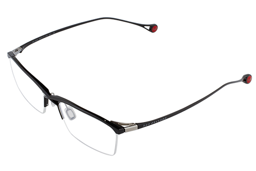 インパクトのあるクロスブリッジとトラス構造はデザインだけではなく、強度面にも優れている。高いプレス加工と切削加工技術を要するため、福井県鯖江でのみ実現可能な立体造形である。