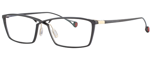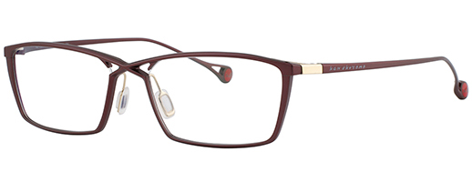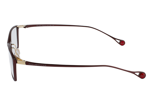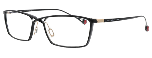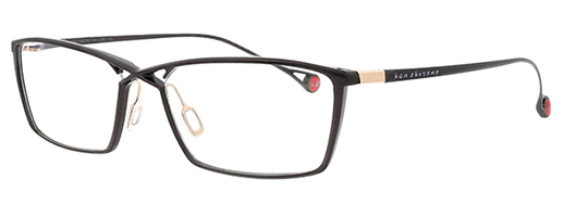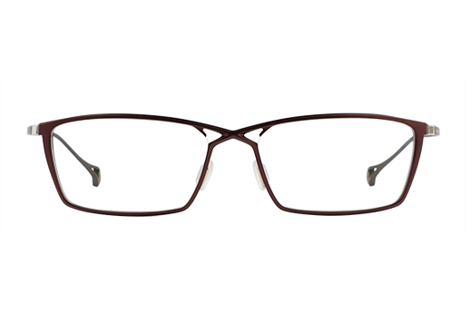 In the structure of cross bridge and truss-design, the full-rims frame is realized, though it makes such combination more difficult to manufacture. The facet cuttings on the front frame make the frame lighter in terms of appearance and weight. The muted colors are used for KO-223. The black color frame has red color on the backside to enhance the identity of Ken Okuyama design.