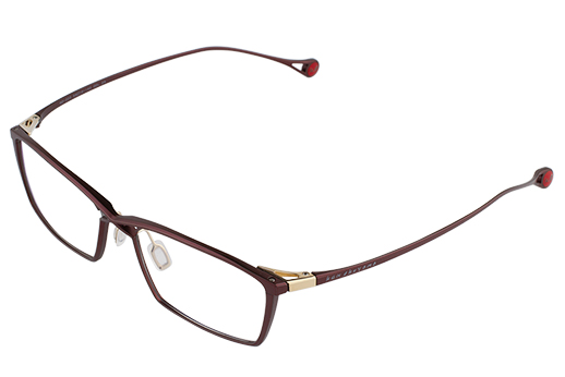 コレクションの統一した側頭部の形状に近づけた特殊なテンプルラインと素材の特徴を活かしたバネ性は掛け心地の良さを発揮する。