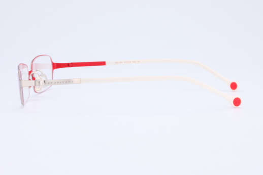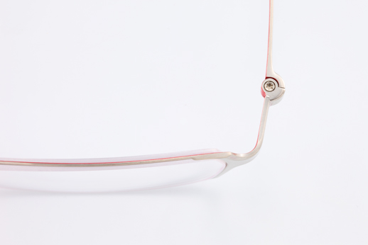 This style has a smallish eye-shape that will fit the Caucasian face. The pad arm and rim-lock are integrated in one part. This is characterized by the concavity and convexity made by cutting of stainless steel and the chamfered edges. The thinnest part is 0.5 millimeter. The long temple sleeves were made from cellulose propionate with soft coating.