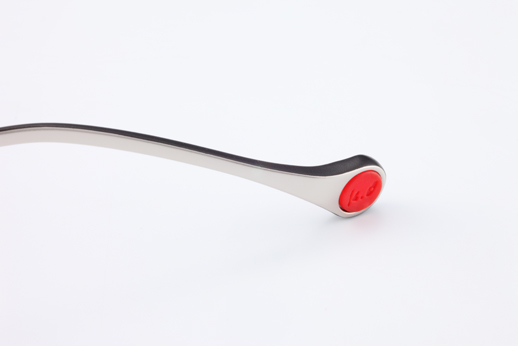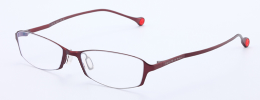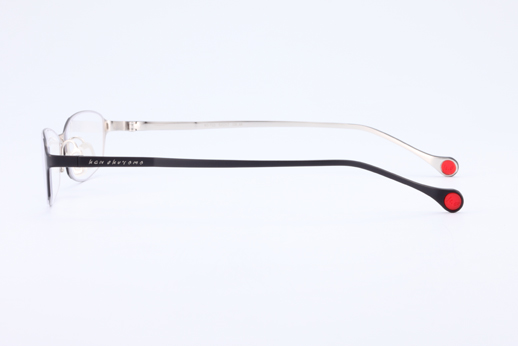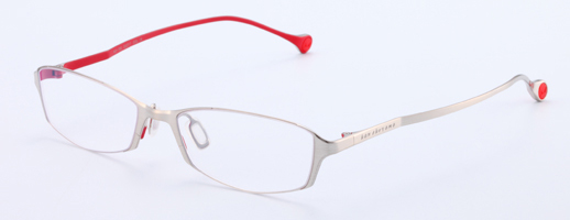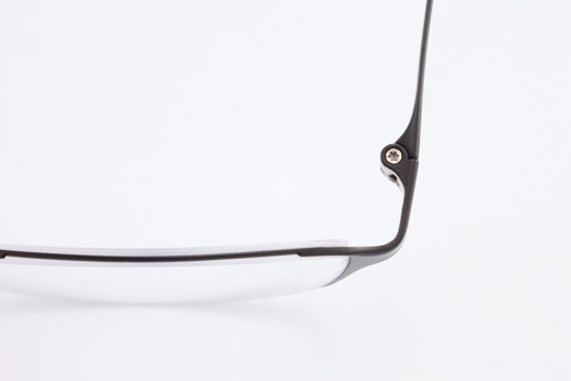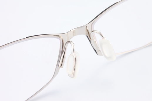 The front has a very fine and stylish shape, which was enabled by the fine cutting of stainless steel material. The side view is simple and smooth, and was made from β-Titanium. The pad arm and rim-lock are integrated in one part. This is characterized by the concavity and convexity made by cutting of stainless steel and the chamfered edges. The thinnest part is 0.5 millimeter.