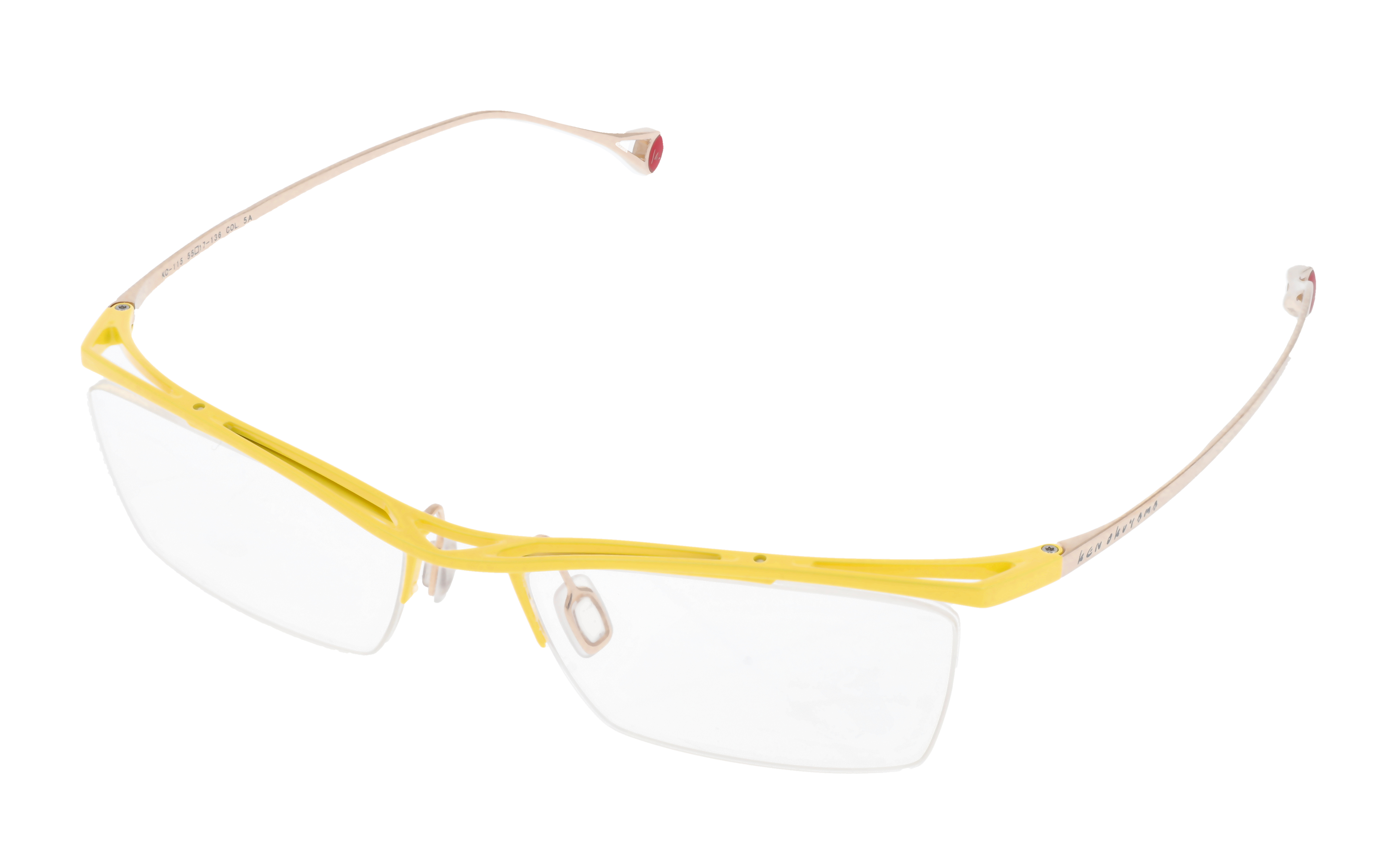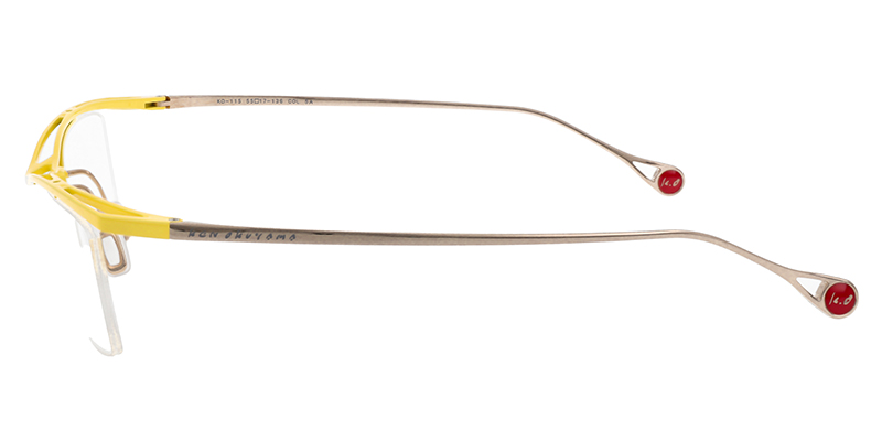 KEN OKUYAMA EYESの特徴の一つでもある正面から見るとシンプルだが上面は独創的なトラス構造が目を惹く、掛けやすくこだわりのあるスリムなフォルムのハーフリムモデルです。
