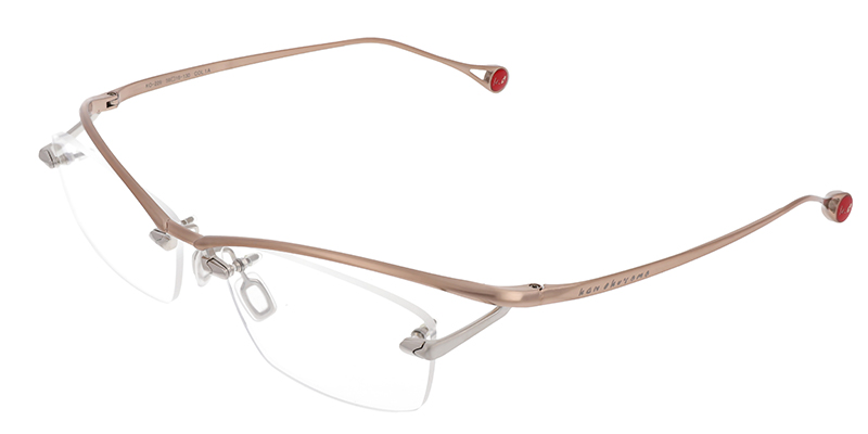 スポーツカーのようなシャープで、丸みのあるラインを融合させた精緻なデザイン。レンズ留め部にブロウ、テンプルと異なるカラーを施し、アクセント。ローズゴールド、バイオレットなど優しいカラーを採用しています。