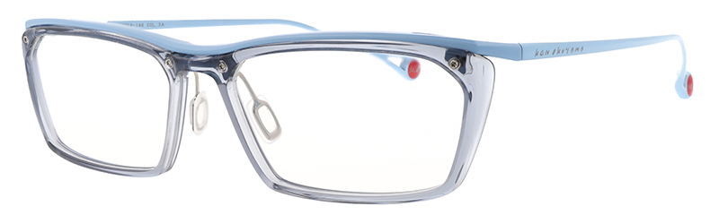 The first KEN OKUYAMA EYES style to use acetate. Available in five colors, the combination of basic colors such as black and brown or transparent front colors expressing lightness, with solid metal colors enhances the beauty of the materials.