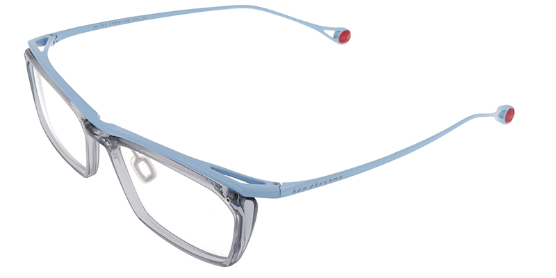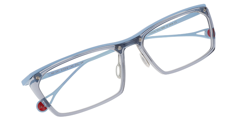 KEN OKUYAMA EYES初の素材にアセテートを採用したモデル。素材の美しさをアピールするため、5カラー展開としています。ブラック、ブラウン、グレーの落ち着いたカラーに合わせ、クリアカラーで軽さを表現したり、明るいメタルカラーで、目を惹くカラーバリエーションとしています。
